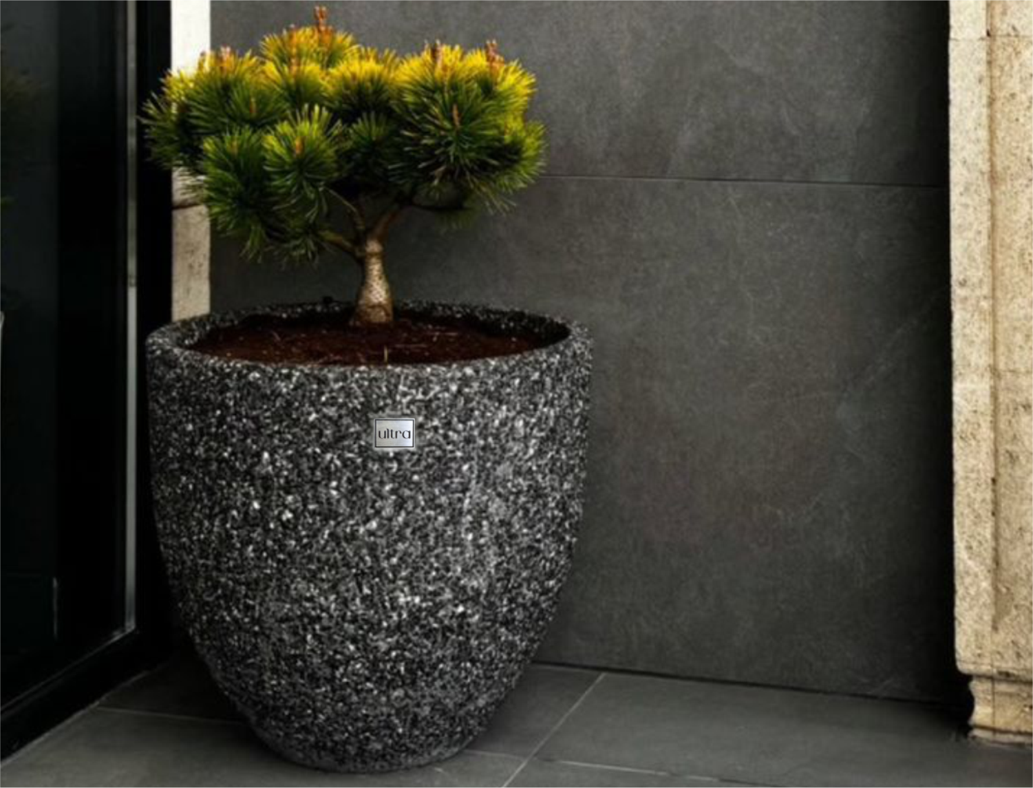 Эстетичные вазоны из архитектурного бетона с натуральным камнем.